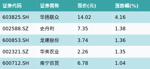 截至收盘,农村电商主题涨跌幅最高的五只股票为:华扬联众(603825.SH)、史丹利(002588.SZ)、龙建股份(600853.SH)、华英农业(002321.SZ)与南宁百货(600712.SH)。详情见下表: