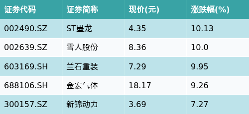 南财智讯5月6日电,天眼查显示,今日天然气主题走强,截至收盘(下同)上涨0.46%。持有天然气主题股票的华夏中证石化产业ETF(159731)上涨0.93%,最新价报0.653元。截至上个交易日(4月30日),该基金近五个交易日净值(复权单位净值,下同)保持不变,近一个月净值下跌5.25%。该基金自(20211202)成立以来净值增长率为-35.21%,管理人为华夏基金管理有限公司,基金经理为单宽之。截至收盘,天然气主题涨跌幅最高的五只股票为:ST墨龙(002490.SZ)、雪人股份(002639.SZ)、兰石重装(603169.SH)、金宏气体(688106.SH)与新锦动力(300157.SZ)。详情见下表: