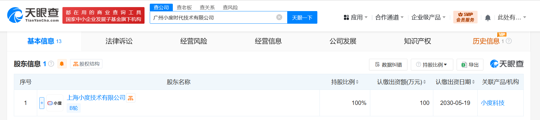 小度科技在广州成立小度时代技术公司