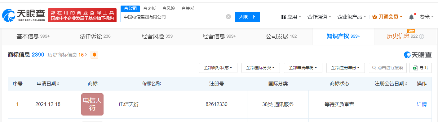 中国电信申请注册天衍商标