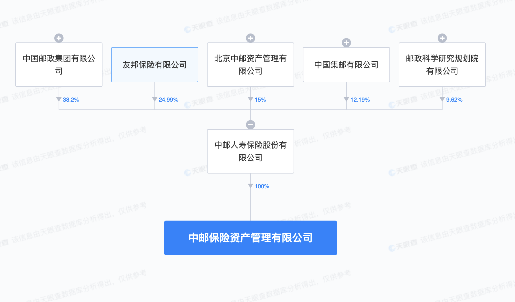 南方财经10月31日电,天眼查App显示,近日,中邮保险资产管理有限公司成立,注册资本5亿人民币,董事长为韩广岳,法定代表人、副董事长、总经理为阴秀生,经营范围为保险资产管理。股权全景穿透图显示,该公司由中邮人寿保险股份有限公司全资持股,后者由中国邮政和旗下3家公司,以及友邦保险有限公司共同持股。据报道,今年1月,原中国银保监会(现:国家金融监督管理总局)发布批复公告,同意中邮保险出资筹备中邮保险资管筹建。中邮保险资管为业内第34家保险资管公司,同时也是2022年7月份《保险资产管理公司管理规定》发布后,首家获批成立的保险资管机构。