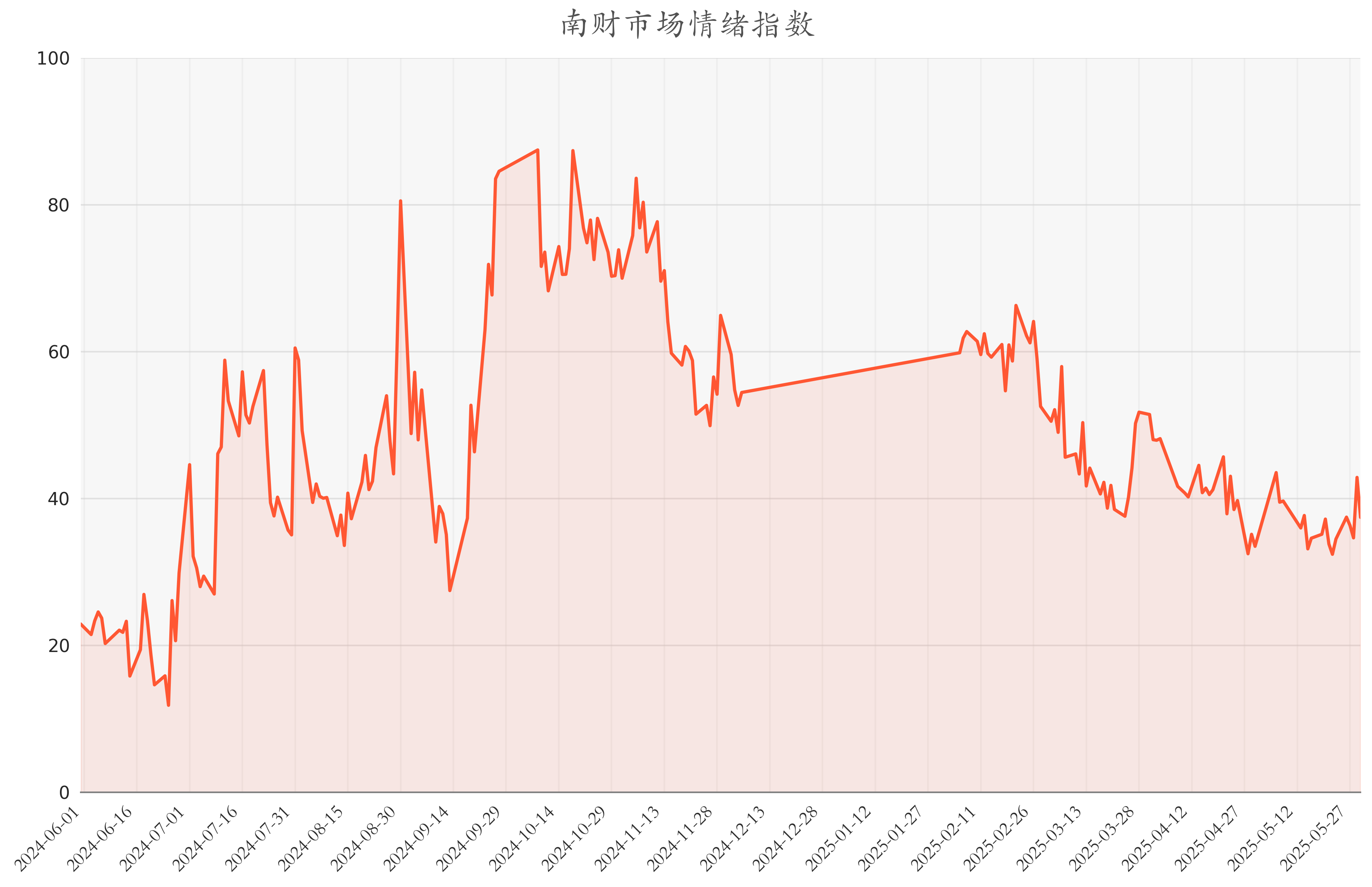 今日南财市场情绪指数为37.45,市场投资热度明显降低