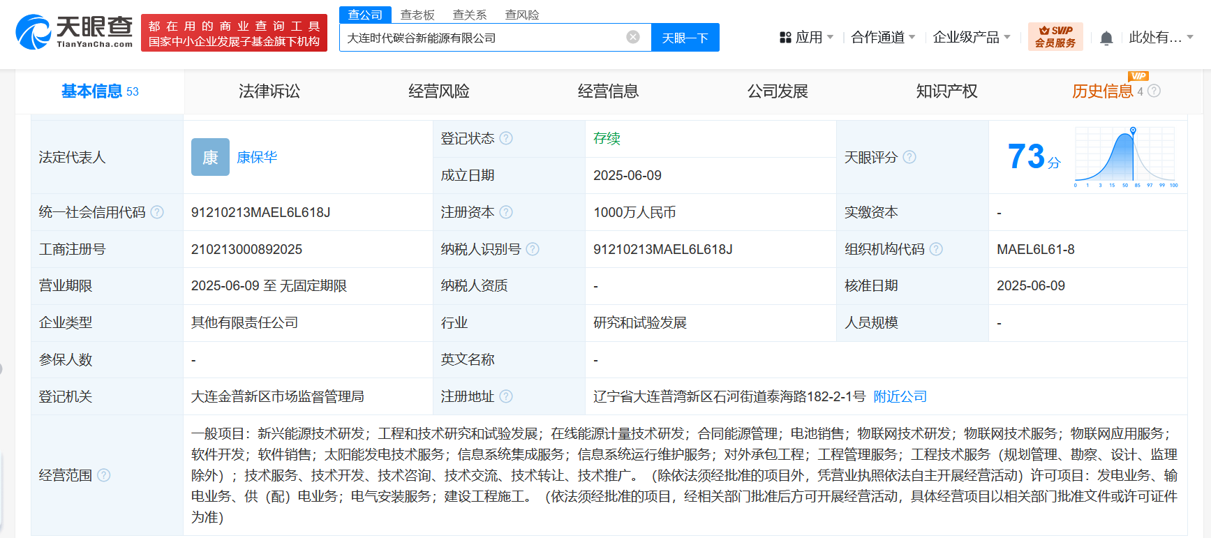 南方财经6月12日电,天眼查App显示,近日,大连时代碳谷新能源有限公司成立,法定代表人为康保华,注册资本1000万人民币,经营范围含新兴能源技术研发、工程和技术研究和试验发展、在线能源计量技术研发、合同能源管理、电池销售、太阳能发电技术服务、信息系统集成服务、信息系统运行维护服务、工程管理服务等。股东信息显示,该公司由宁德时代(300750)旗下时代绿色能源有限公司以及贝特瑞(835185)、大连东方碳谷新材料集团有限公司共同持股。