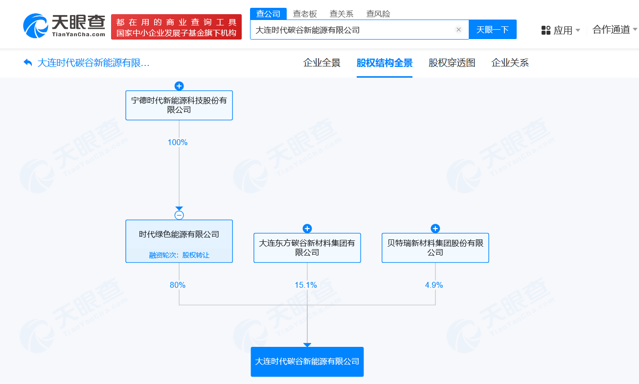 宁德时代、贝特瑞等在大连成立新能源公司 注册资本1000万