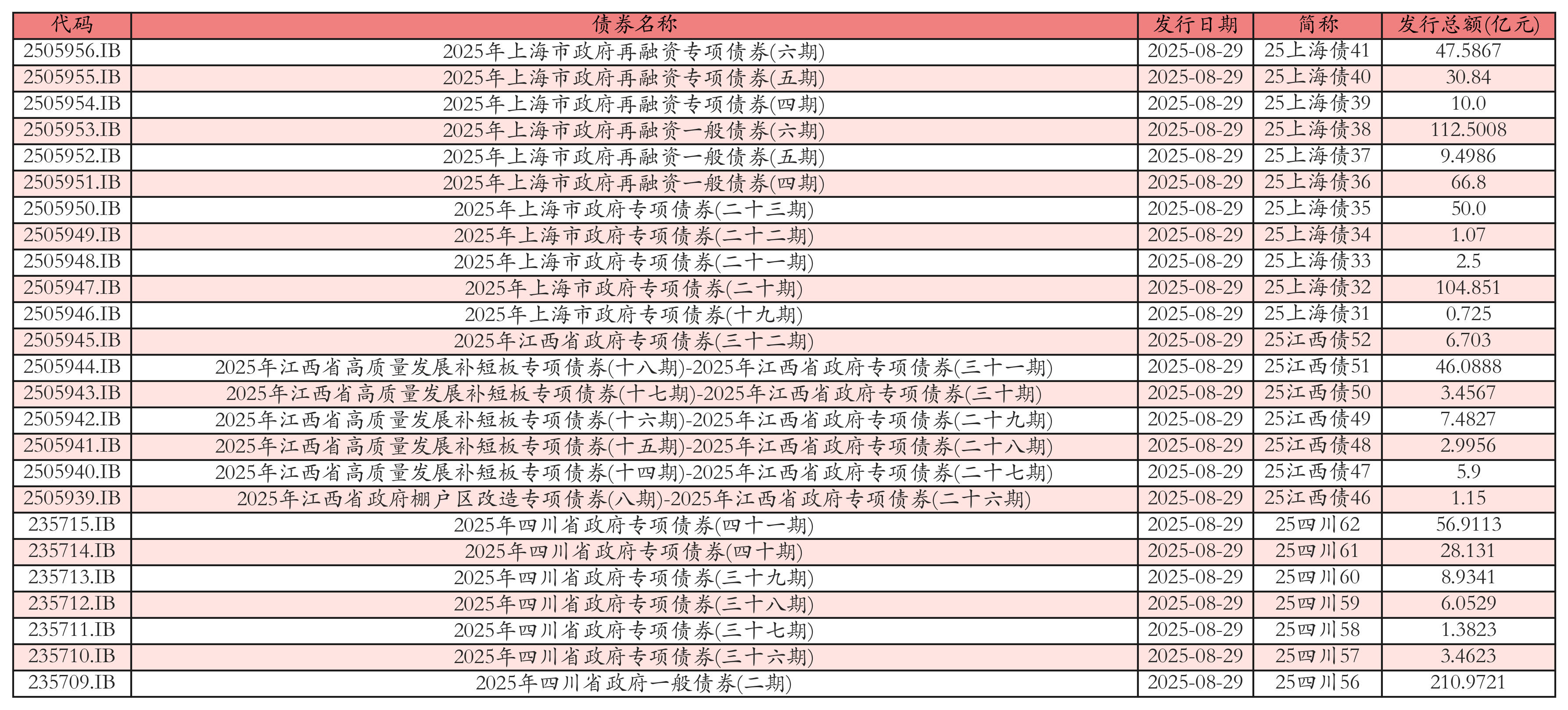 8月29日全国共发行25只地方政府债,共计825.9949亿元