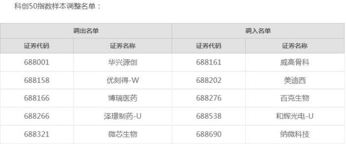 南方财经2月25日电,上交所与中证指数有限公司决定调整科创50指数样本,自2022年3月11日收市后生效。科创50纳入和辉光电、纳微科技、百克生物、美迪西、威高骨科5只证券,调出5只证券。科创信息纳入和辉光电、瑞可达、力芯微3只证券,调出3只证券。此次样本调整后,指数的代表性有所加强。(证券时报)