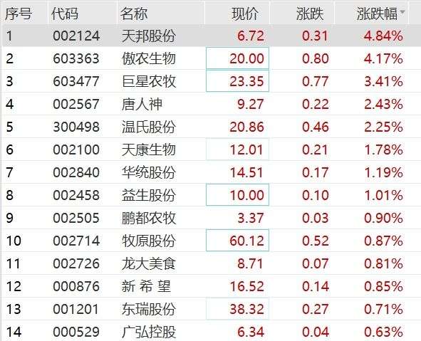 猪肉板块震荡走强