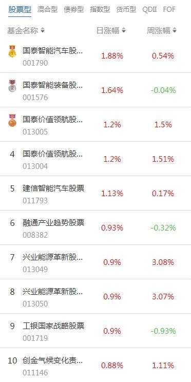 南财基金通·股票型基金收益排行榜(7月18日)