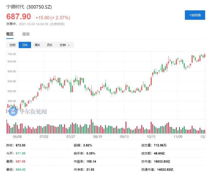 宁德时代涨超2%,股价创历史新高