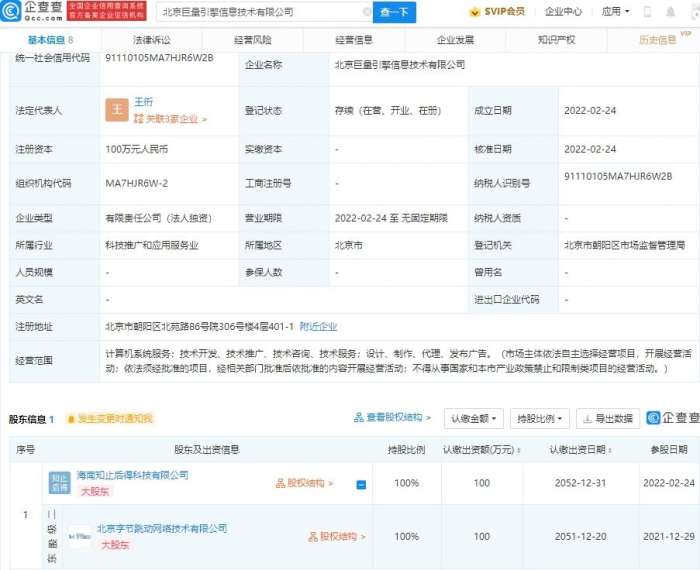 字节跳动于北京投资成立巨量引擎信息技术公司