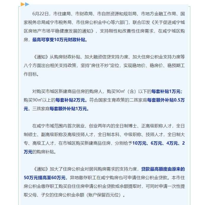 最高补10万,湖北咸宁公布最新购房补贴政策