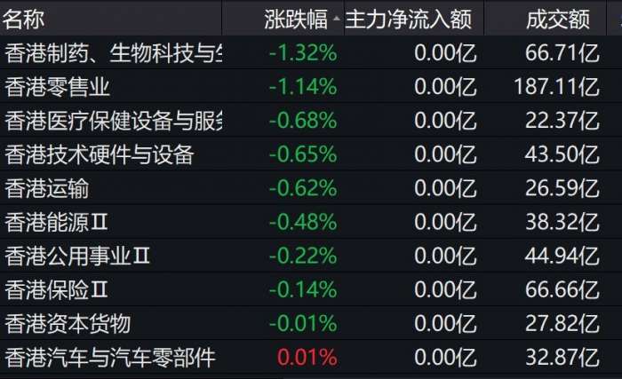 港股收评:指数涨跌不一 旅游相关产业链股集体上涨 军工板块跌幅最大